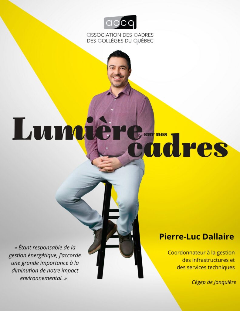 Étant responsable de la gestion de l’énergie, j’accorde une grande importance à la diminution de notre impact environnemental ainsi qu’à notre transition énergétique. Dans les 4 dernières années, j’ai piloté un projet de 8,1 millions de dollars en économie d’énergie et efficacité énergétique qui permet au Cégep de Jonquière, dès maintenant, de rencontrer les cibles gouvernementales de réduction de GES et d’économie d’énergie fixés pour 2030 par le gouvernement du Québec.